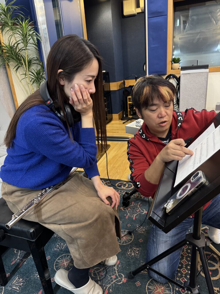 そして、ラストを飾る録音は、我らがアスエコの奥野由紀子によるフルート。これをもって、アルバム「villa HIRUGI オリジナルサウンドトラック」の収録曲におけるすべての楽器のレコーディングが完遂しました。